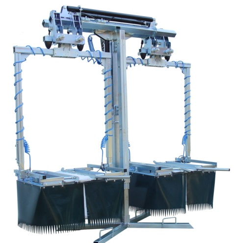 Chemical Sucker-Remover AIRONE 2 BASIC Shielded de-suckering unit codice : A2B10/2B Features - Lateral straddle boom - Hydraulic hoisting device - Hydraulic lateral movements - Pendulum fork adjustable in height and width Features of spray-head - Top cover with brushes - Vertical cover with PVC material - 4 anti-drip nozzles inside - Bumper with draft to facilitate entry into rows - Fixing: In the front of the tractor by means of suitable brackets (not supplied) Note Hydraulic supply system: AIRONE 1 BASIC needs a tractor equipped with 3 double-effect distributors so as to feed 1 hoisting piston and 2 pistons for lateral shifts (hydraulic connection hoses are not supplied) Max. height of the poles in the rows 2,20 m Accessories / applications HOBBY BP...>> FOG BASIC...>> |